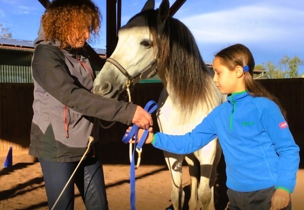 Diese erlebte Aufmerksamkeit kann ich übertragen und in die Schularbeit einbringen, so z. B. bei der Anwendung von Rechtschreibstrategien. Mit dem Pferd und am Tisch in der Reiterstube arbeiten wir spielerisch und mit Freude.